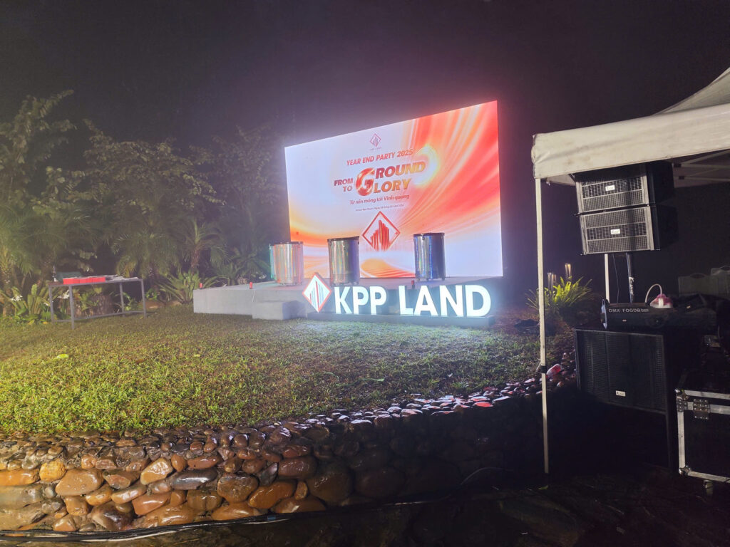 Sân khấu ngoài trời công suất lớn: Hệ thống sàn chịu lực cao (cao 80cm – 1.2m), có khung giàn không gian (Truss) để treo đèn, loa và màn hình LED quy mô lớn.